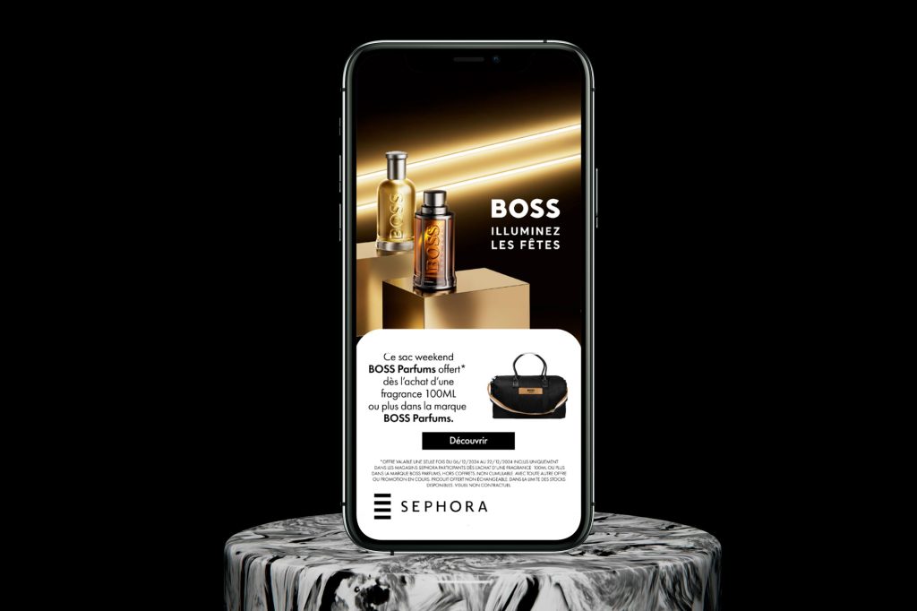 Problématique : La marque BOSS Parfums du groupe COTY nous a sollicité pour générer du trafic sur point de vente et booster les ventes de la marque sur la fin d’année 2024. Nous avons donc mis en place une campagne géolocalisée pour inciter les consommateurs à se rendre sur le point de vente et découvrir l’offre proposée par la marque.